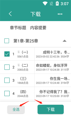 5、最后勾选出你要下载的章节,你也可以点击全选,选完之后点击下载即可。