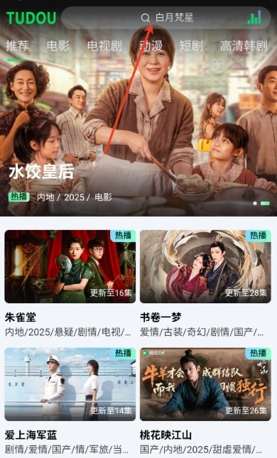 1、在搜索框中输入你想观看的剧集或电影名称,点击搜索