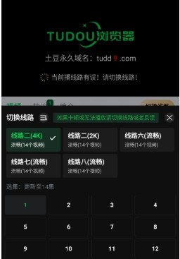 1、打开土豆浏览器进行追剧,挑选自己感兴趣的影视作品,然后进入其播放页面。