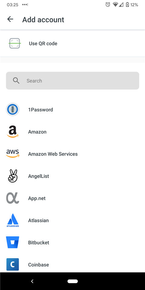 您还可以从列表中选择要添加的账户类型,然后通过扫描二维码或输入从该应用收到的激活码来选择添加该账户。详细了解如何将第三方账户添加到 Duo Mobile