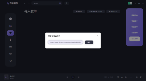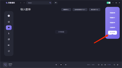 2、进入歌单界面后,选择右侧的【导入歌单】选项,