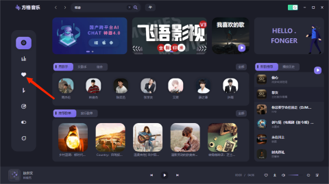 1、启动morin魔音,进入到主界面后,点击位于左侧的【爱心】歌单图标。