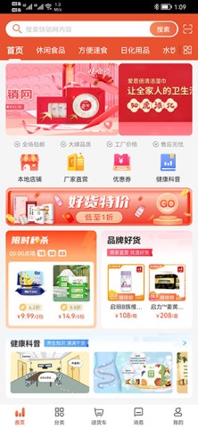 1、第一步,安装快销网。安装完成打开后,在首页你会看到限时秒杀专区,这里有众多家庭必备好物正在以特价火热销售,全是品牌正品,等你来抢购。