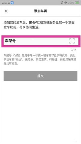 3、接下来在新的页面上输入你的车架号,或者直接扫一扫来添加车架号。