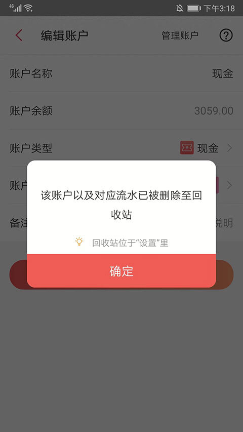 5、当提示显示“该账号以及对应流水已被删除至回收站”时,即表示账户删除操作已完成。