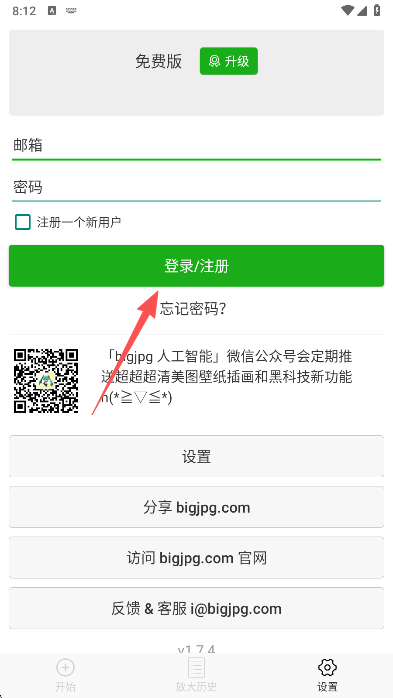 2、需要确保是正确的邮箱格式,登录后即便您下次使用,也能帮您云保存之前放大过的图片了