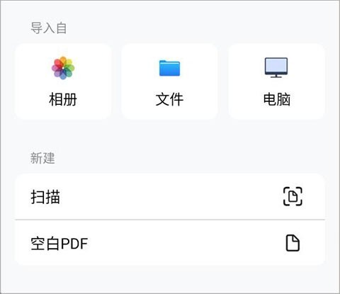 我们提供了多种文件导入方式,点击首页或“最近”页面的“+”按钮,您既可以从相册导入图片、通过拍摄扫描生成PDF,也能从系统文件应用中导入PDF文件。