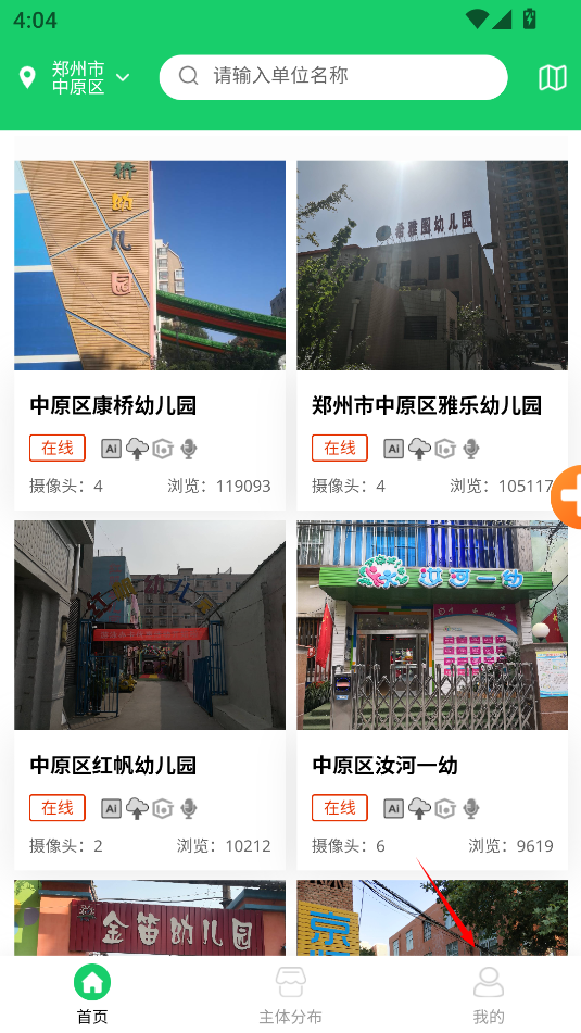 3、点击“查看后厨”后,监控实时展示页面将跳转至餐厅后厨的所有监控摄像头界面,家长可选择不同的监控地点进行实时查看。