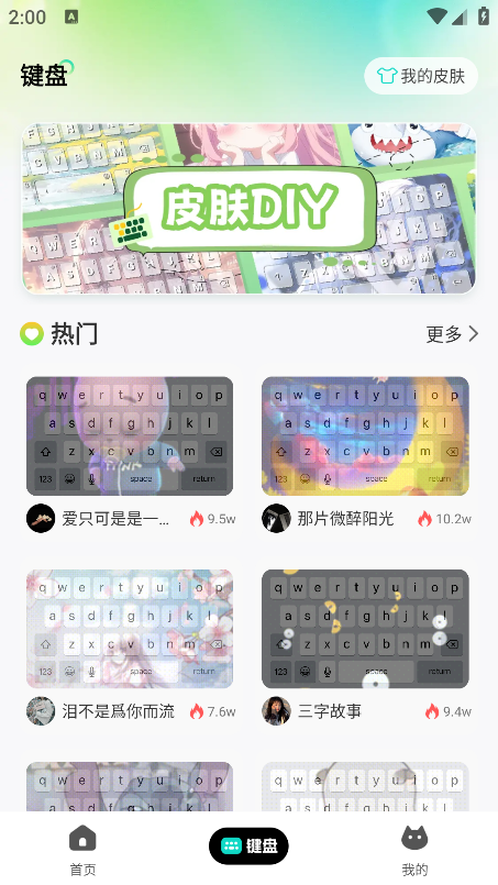 2、然后可以看到各种键盘皮肤