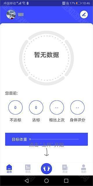 1、用户登录进入应用页面后点击底部中间的体重秤图标