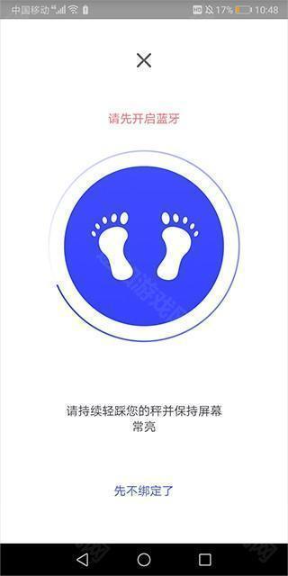 3、在新打开的页面里,根据提示开启手机蓝牙,接着持续轻踩体重秤,同时保持手机屏幕常亮,稍作等待就能完成连接。