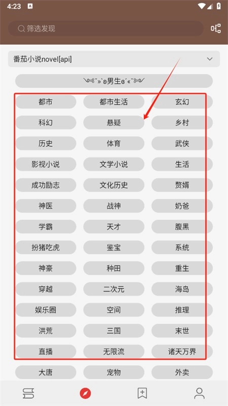 3、进入后选择合适的书源和小说类型