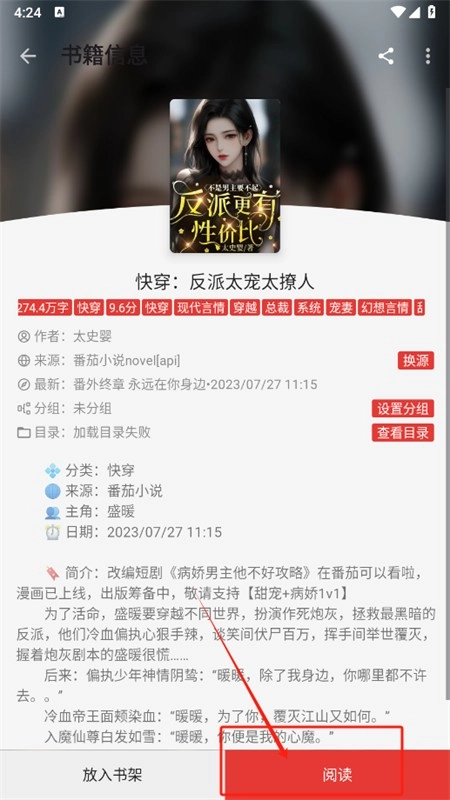 2、点击小说就能开始阅读,进入详情页