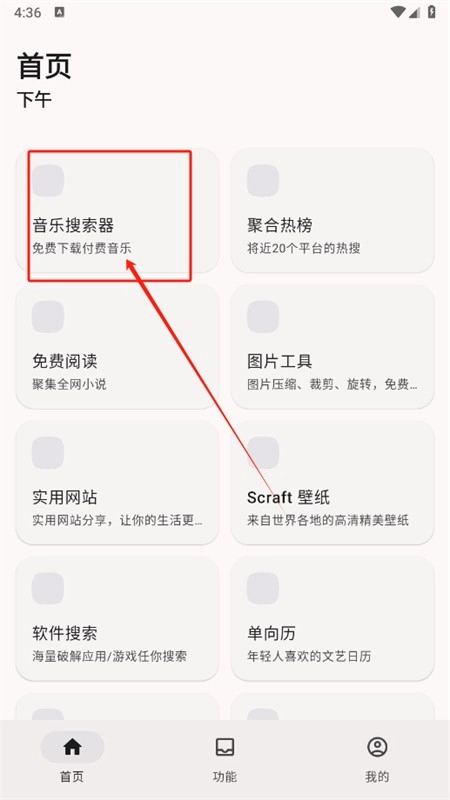 1、打开软件,点击音乐搜索器功能