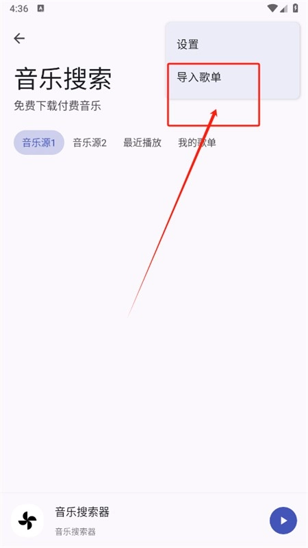 2、点击右上角三个点按钮,点击导入歌单