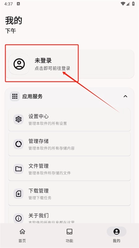 1、打开软件,进入我的功能,点击未登录