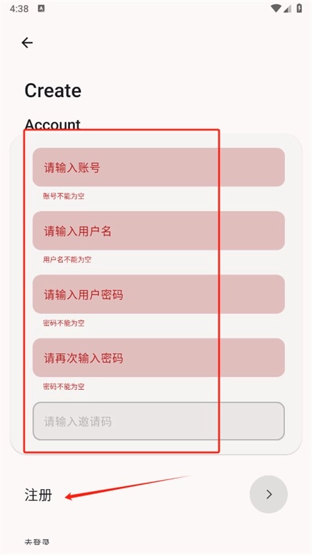 3、输入账号、密码等信息后点击注册即可