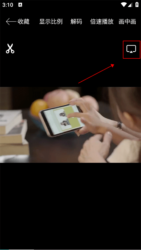 2、进入播放界面后点击右上角的投屏图标