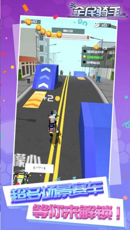 1. 游戏里增添了许多充满个性的独特角色,搭配着清新的画风与炫酷的特效,还有各种各样帅气的摩托车供玩家挑选,你需要通过匹配竞赛模式来寻找实力相近的对手,开启一场精彩的竞技较量。