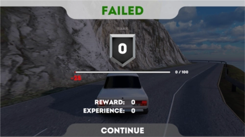 5、持续挑战能让你提升驾驶技巧,取得更优异的成绩,还能解锁更多车辆、赛道或游戏模式;不过,一旦碰撞次数超出限制导致游戏失败,就得重新开始。
