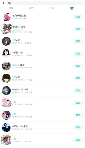 3、最后点击用户名称后方的“关注”按钮即可完成加好友操作,在TapTap平台上,关注行为等同于添加好友。