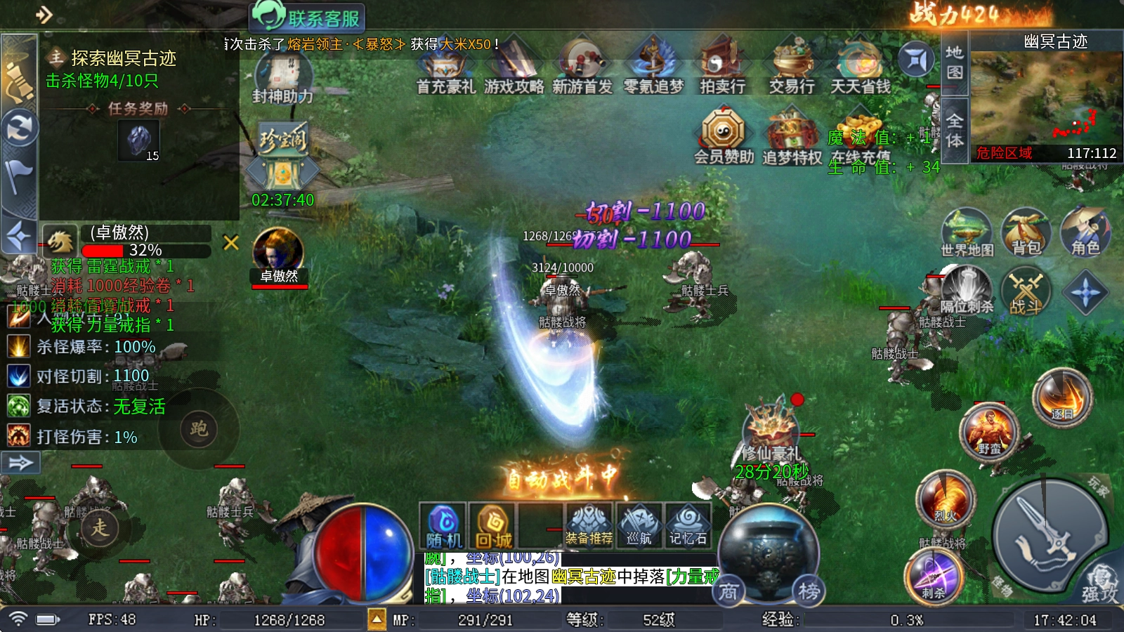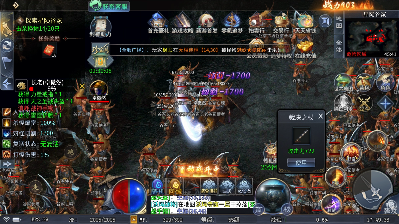 本服实现了真正的属性平衡,所有装备和材料都能通过打怪获取,各类神器、专属装备掉落不断,而且爆率完全公开,每个人都有机会追寻梦想!