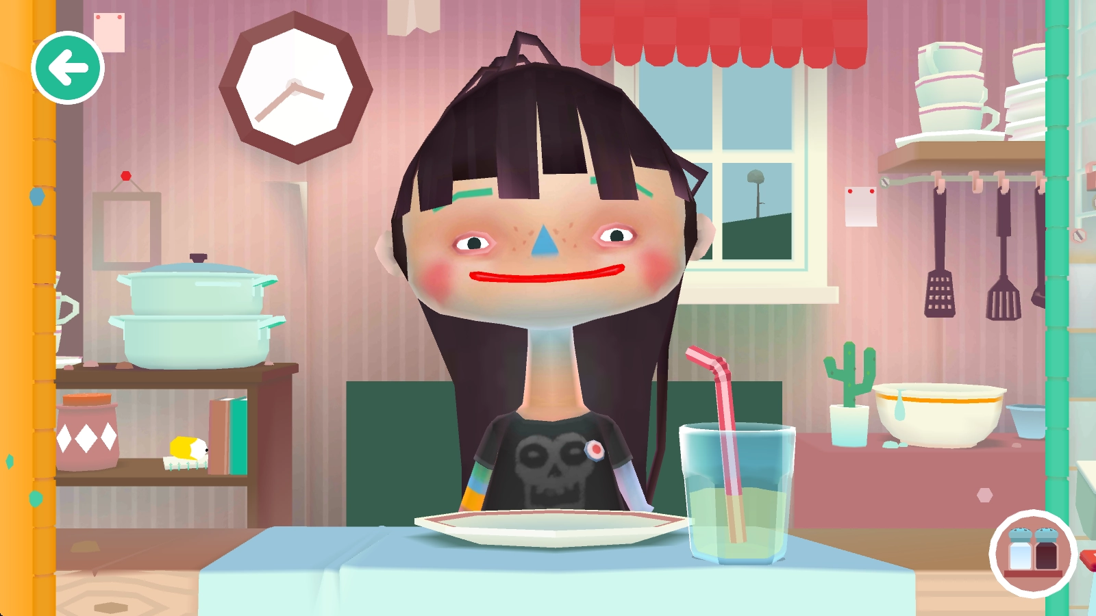 6、制作完成后把它拖到角色嘴边,她就会开始享用,通过观察她的表情就能判断味道如何。