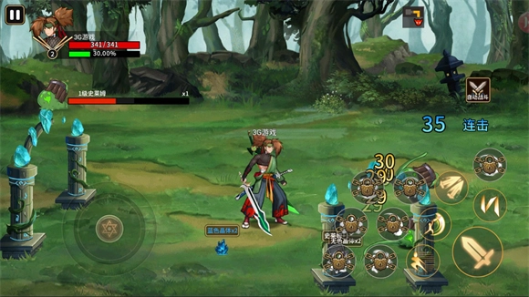 3、进入副本后左边控制角色的移动,右边是普攻和各种技能按键。