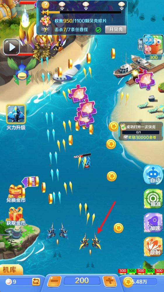 3、击毁敌人还可以收集贝壳碎片,以此来合成珍珠。