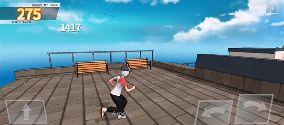 4、正式开始后角色会自动前进,抵达相应地点便会施展各类特技动作;而在前进的过程里,玩家能够自由点击按钮来释放不同的动作。