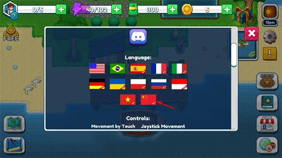 2、接着向下滑动屏幕,在language选项中找到并选择中国国旗图案,这样就能将其设置为中文版了。