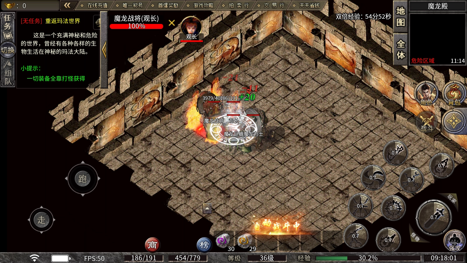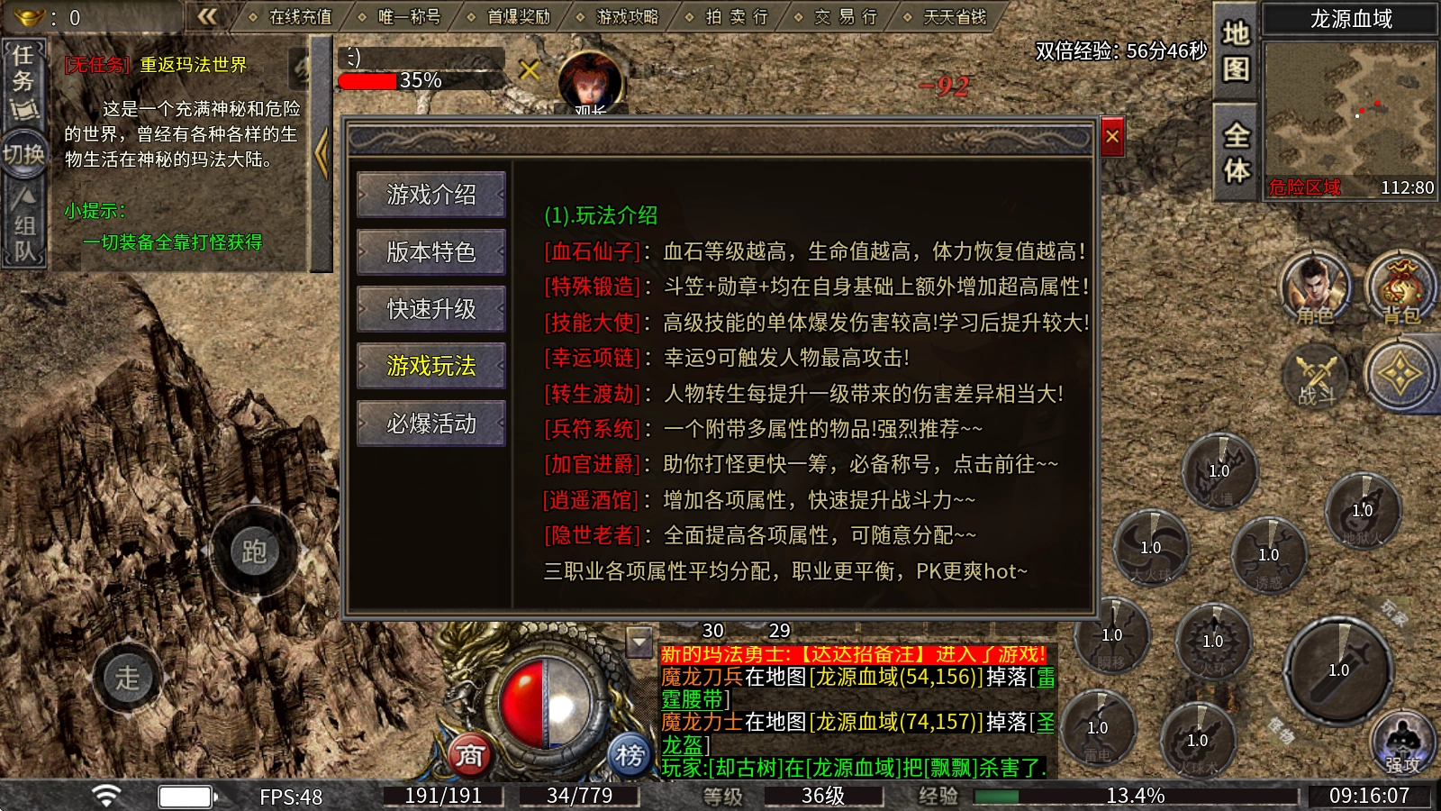 2、每天参与活动都能领取元宝,首次击杀BOSS还能拿到丰厚奖励!登录就送实用技能,游戏里没有任何强制充值的要求,装备和材料全靠自己打怪掉落,挂机也能轻松玩。
