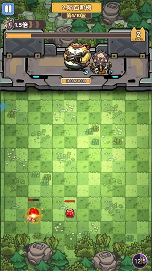 进入关卡后,角色会自动发射子弹攻击怪物,每次消灭怪物都能获取经验。