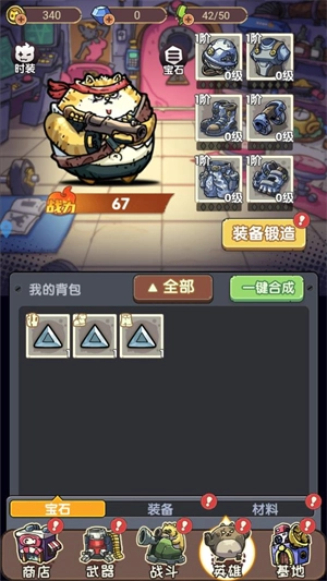 5、在主界面点击英雄可以对角色进行强化和对装备进行升级。