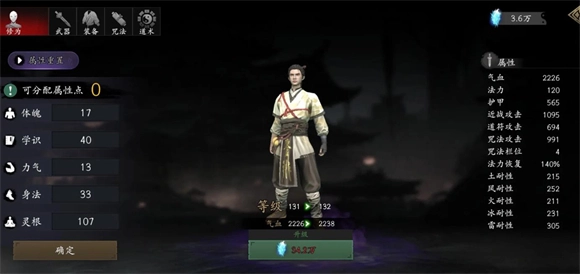 咒封流与近战流的加点思路存在明显差异,它不考虑体魄和力气这两个属性,其余属性则都需要投入点数。其中,灵根是优先拉满的属性,毕竟该流派的核心输出依赖咒法与封印效果。等灵根点满后,学识只需加到40点即可停手,这么做主要是为了解锁四个咒法栏位。至于剩下的属性点,全部用来加身法就行,这样能提升符纸的输出能力。