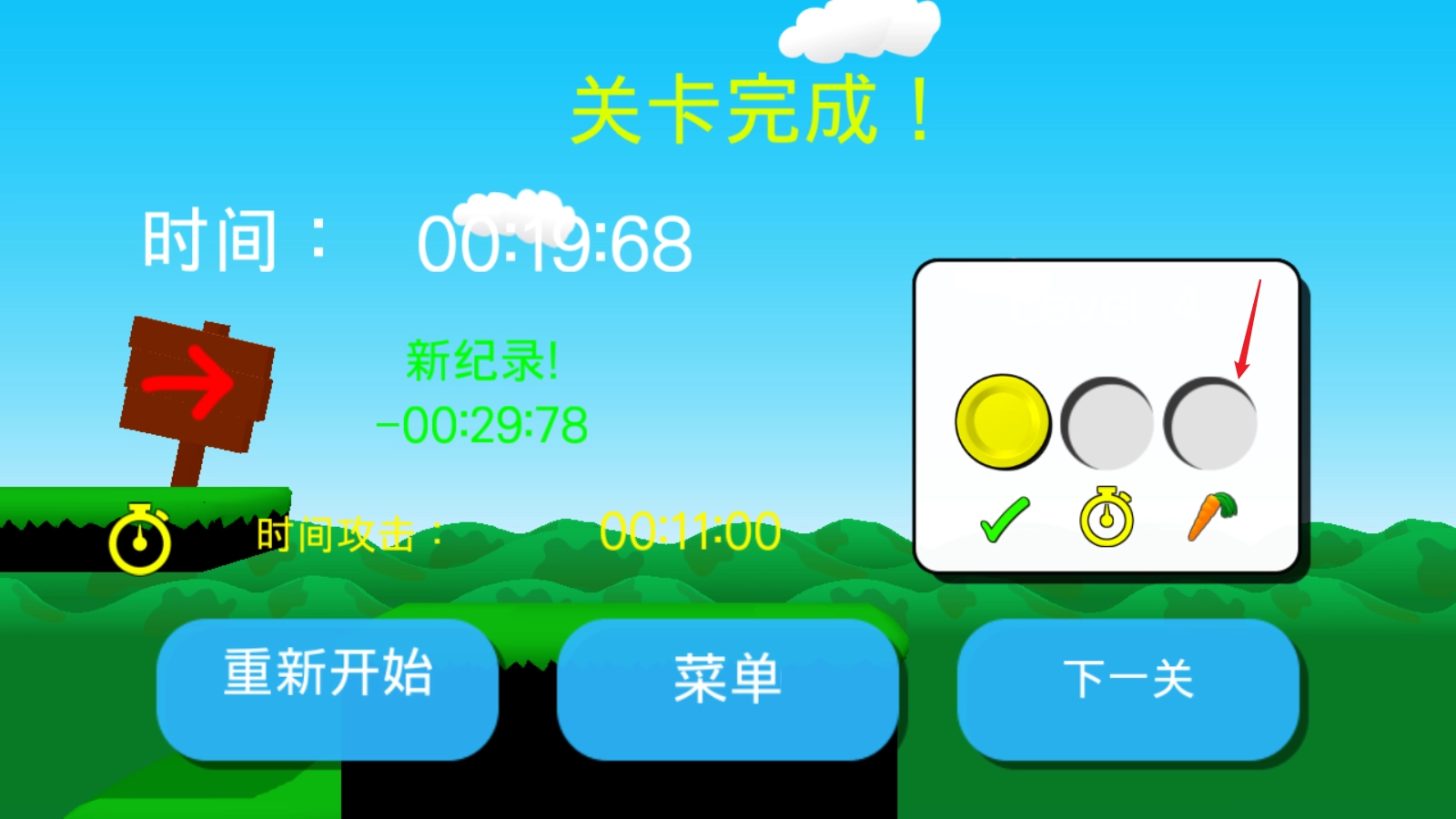 6、通关之后会结算奖励,同时记录你的用时,要留意右侧,我们得达成特定条件才能满星完成任务!