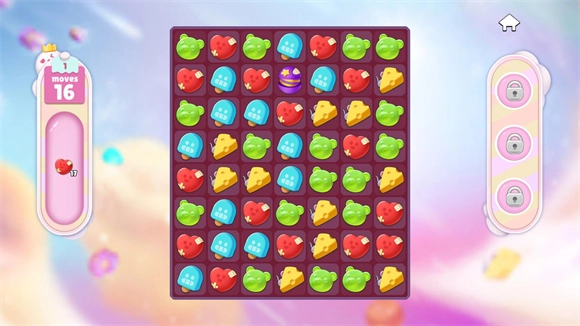 剧情结束后会开启新手关卡,点击图案即可移动,当同一排或同一列出现三个相同图案时,它们就会消除。