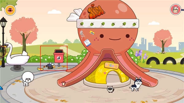 3、挑选任意场景进入后,能参与环境整理工作,像把地上的垃圾捡起来丢进垃圾桶,既能让空间变得美观,又能提高宠物的舒适度;游戏里差不多所有的物品和动物都可以进行拖动操作,这样能加强沉浸感;