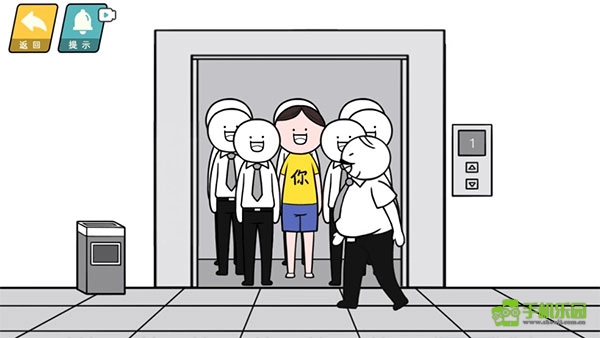 在上班乘坐电梯时遇到领导,主动操控角色往电梯内侧移动,为领导腾出空间。