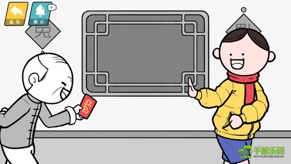 与老人进行红包推拉互动(先向右滑动再向左滑动),最后顺利收下红包。