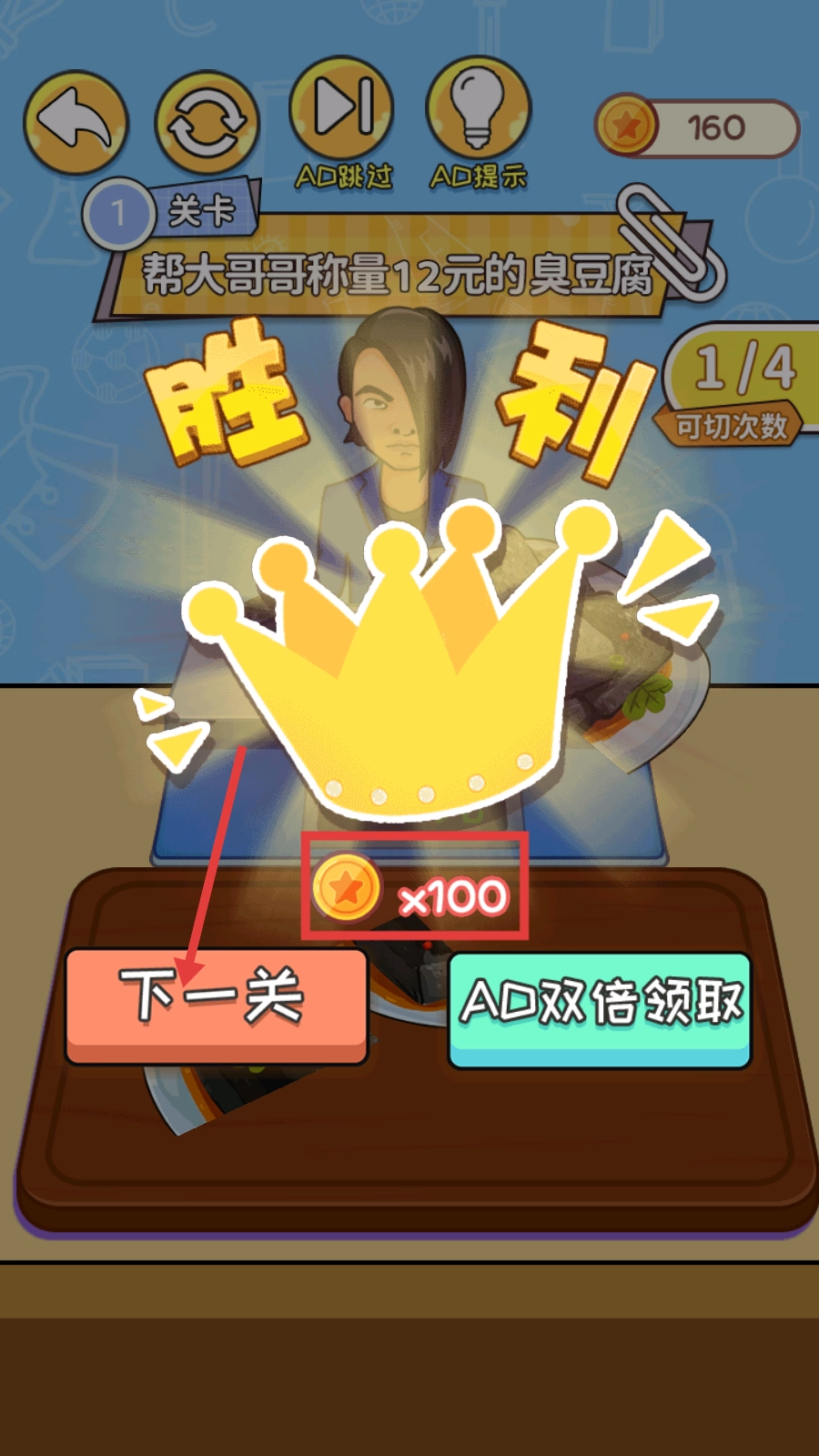 4、完成关卡通关后,您将获得【金币×100】的奖励,点击界面上的【下一关】按钮即可开启新一轮挑战。您所积累的金币可用于解锁后续新关卡,也能兑换各类实用道具。