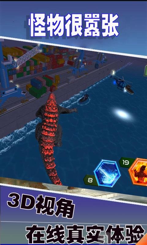 1. 线上出现巨型怪物,你能够操控它们去破坏城市,也可以前往不同地点将其消灭。