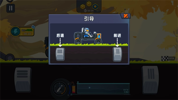 1、在本站安装登山飞车3游戏,打开进入游戏,先来熟悉一下练习关卡。