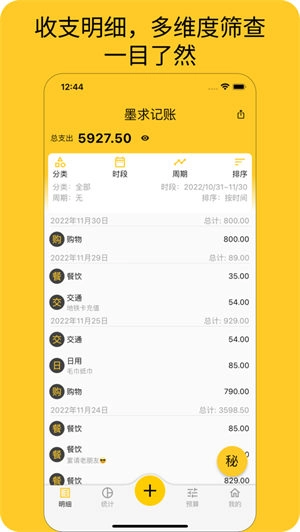 墨求记账是一款便捷实用的记账软件,线上记账功能丰富多样,记账过程中无任何广告干扰,简单易上手的操作让新手也能轻松使用,还有详细的图表为你呈现全面的收支情况。