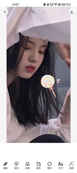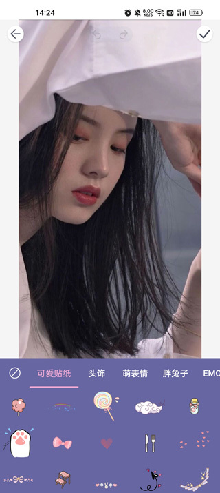 4、通过底部工具栏使用贴纸功能丰富画面;