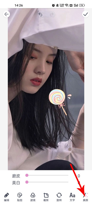 7、若皮肤色调偏暗,可开启美颜功能进行提亮美化;