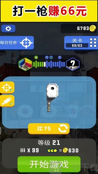 在游戏里,玩家能够解锁形形色色的武器道具,同时提升自身射击能力,从而收获畅快的游戏体验。每一关的目标物体各不相同,射中它们便能获取一定奖励。此外,游戏的音效与操作手感极为真实,当你感到烦躁时,不妨来玩上一局。